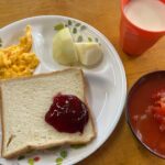 ★食パン ★スクランブルエッグ ★リンゴ ★豆スープ ★牛乳 ★プラムジャム 今日はふるさと祭りにむけての作業日です!! 気合入れていい作品作るぞ~🚩 まな
