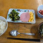 本日の朝食はまなさんメニュー! ・スクランブルエッグとハム ・ブロッコリーの塩昆布和え ・プラムジャムヨーグルト ・みそ汁(つねさん仕込み) でした! みそ汁に入っているこんにゃくは地域の方からの差し入れ。 手づくりこん […]
