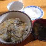 ■ねばねばシラス丼(とろろ芋・めかぶ・納豆・温泉玉子・シラス) ■みそ汁 かき混ぜた後の撮影になってしまったので、ビジュアル的に甚だ『映えない』感じに……。 ねばねば丼ごめんよ。 /池