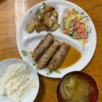 今日の朝食はつね担当。 少し洋風のおかず。メニューは ・キャベツとソーセージのドイツ風を意識した煮物 ・じゃがいもと玉ねぎたっぷりスープ ・チーズ ・人参スティック ・リンゴ 今日の食事のお手伝いの園生Sは、さすがになれ […]