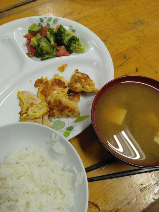 9月4日 夕食公開済み: 2025年9月4日更新: 2025年9月4日作成者: 管理者カテゴリー: かじかなごはん今日の夕ご飯は、池さんの特製です。メインメニューは、鶏のささみのピカタ!夕方の自由時間、腹ペコのみんなが集うリビングにおいしそうな香りが漂います。ごま油の効いたサラダに、だしの風味豊かなお味噌汁。あっという間の完食です。お代りもたくさん。「 みんな、以前の食欲を取り戻してきた感じです。 この調子で、盛りだくさんの学園生活2学期を楽しもう!関連記事 8月28日 夕食*** Mちゃんメニュー ***・オムライス・フルーツサラダ・A夢のスープ Mちゃんが厨房へ入ると・・・助っ人たちがゾロゾロ厨房へむかいます・・・。 食当のI希が サラダを担当。ドレッシングまで がんばって作りました! […]公開済み: 2020年8月28日更新: 2020年8月28日作成者: 管理者カテゴリー: かじかなごはん 1月18日朝食・一生懸命焼いたホッケ ・意外と時間のかかったほうれん草とツナコーンの胡麻和え ・超すっぱいもずく酢 ・気合のじゃが芋と玉ねぎのみそ汁(学園手作り味噌) ・愛情込めて炊いたご飯 ・デザートに甘~ぃみかん 今日も元気でごは […]公開済み: 2024年1月18日更新: 2024年1月18日作成者: 管理者カテゴリー: かじかなごはん 2月15日 夕食本日はなつさんご飯です☺ 豚肉と豆苗の炒め物 炊き込みご飯(保護者から送っていただいたサーモンのあら使用) チクワとワカメの炒め物 豆腐のみそ汁 炒め物は、ごはんが進む味でとっても美味しかったです! ごちそ […]公開済み: 2025年2月16日更新: 2025年2月16日作成者: 管理者カテゴリー: かじかなごはん