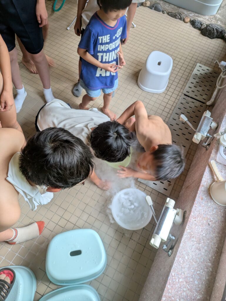 水をはった洗面器に ドボン!