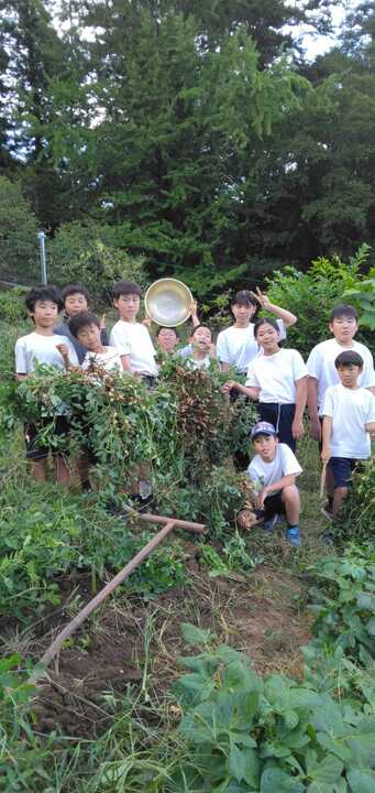 結構どっさりなっていて、驚きの声が上がりました。大粒の“おおまさり”という品種です。今日は試し掘りなので、掘ったものを乾燥させずにすぐにゆでて試食をしました。
