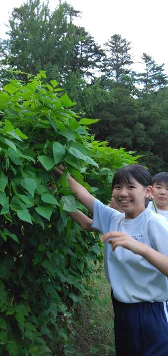 上野村が誇る、在来野菜の白いんげんの収穫です。