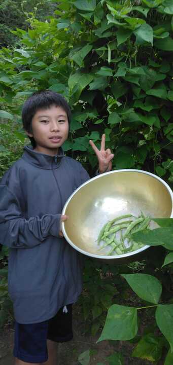 小学生の中学年生までは、収穫後の試食の準備のために園舎にもどり、高学年生と中学年生にももう一つの収穫ミッションが。なぜ高学年生以上かというと、、