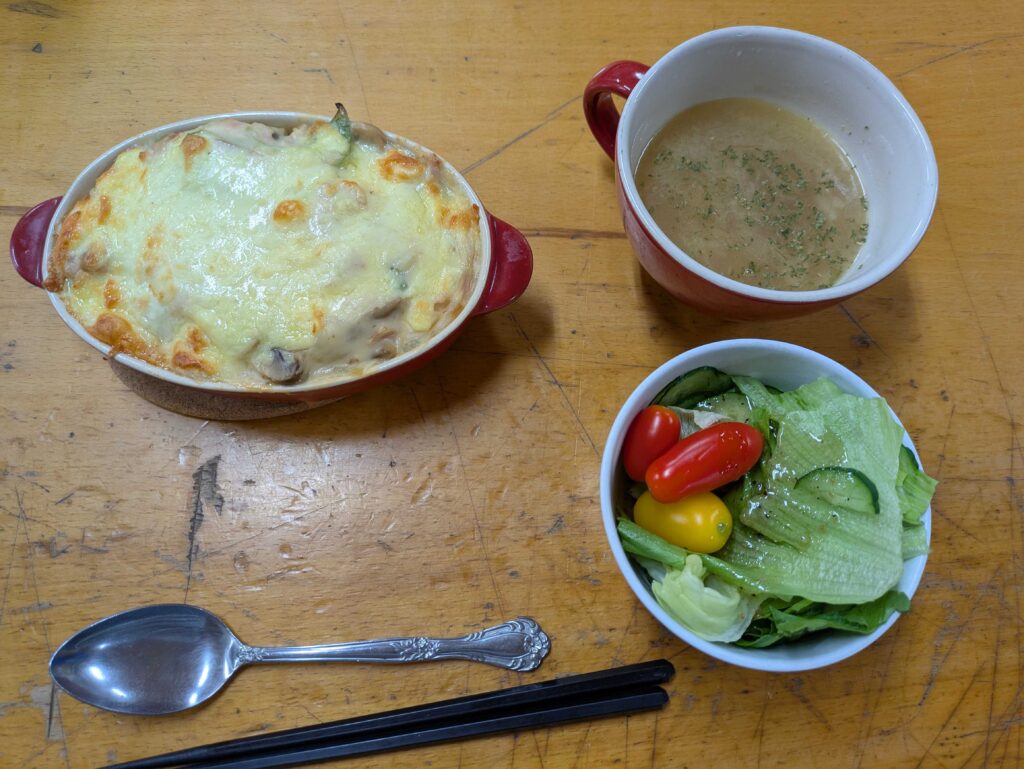 本日の夕食はまなさん、J一、Aたの洋風レストランメニュー!
