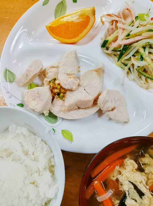 10月5日 夕食公開済み: 2025年10月5日更新: 2025年10月5日作成者: 管理者カテゴリー: かじかなごはん本日の。夕食はナツさんの特製、よだれ鳥! がメインで、サラダに中華風卵スープという、まさにご飯がすすむ学園生の胃袋直撃のメニューでした。中華風スープのきくらげがとっても美味しかったです。ちょっと、園生たちには辛いかなー、という心配をよそに、「このタレ、やみつき!」という園生が多数であっという間によだれ鶏のタレがなくなり、そしてごはんのお釜もすぐに空っぽに。いよいよ本格的な食欲の秋がやってきましたね。たくさん食べて、イベント盛りだくさんの秋を楽しもう!つね関連記事 11月3日 昼食・かけうどん 二人が調理の応援に入り天ぷらを揚げてくれました。人数分を揚げるのに結構な時間を費やしまして、 最後まで根性で頑張ってくれました。 大変良く出来ました! ごちそうさまでした。 //瀬下 公開済み: 2021年11月3日更新: 2021年11月4日作成者: 管理者カテゴリー: かじかなごはん 2月7日 夕ごはん本日は、指導員たんごさんの特製晩御飯です。 メニューは ○クリームシチュー ○マカロニサラダ ○フルーツの盛り合わせ 今日は小学校授業参観があったので、保護者の方々が来園しました。 その際に、手作りのマカロニサラダと、イ […]公開済み: 2025年2月7日更新: 2025年3月6日作成者: 管理者カテゴリー: かじかなごはん 9月12日夕食・豚の生姜焼き丼 ・白菜、ワカメ、油揚げのみそ汁 ・リンゴ、(キウイはちょびっと)、学園トマト 豚の生姜焼きは、玉ネギ、ニンジン、シシトを入れ、ご飯の上に千切りキャベツを乗せた丼によそりました。生姜とニンニク、十石味噌を […]公開済み: 2021年9月12日更新: 2021年9月12日作成者: 管理者カテゴリー: かじかなごはん