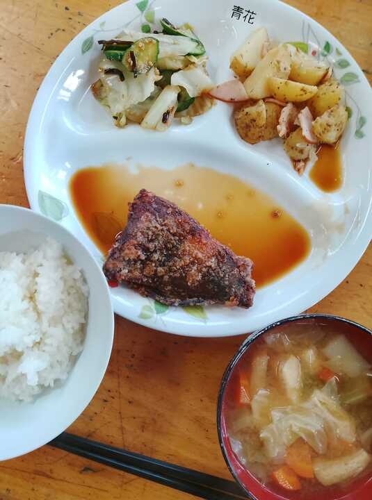 10月6日 朝食公開済み: 2025年10月6日更新: 2025年10月6日作成者: 管理者カテゴリー: かじかなごはん本日の朝食は指導員つねが担当。ホッケを竜田風に揚げ焼き学園畑のジャガイモのジャーマンポテト風キャベツときゅうりの塩昆布和えナツさんが仕込んでおいてくださったお味噌汁朝活で、裏山にて五感を生かしたウォーキングを行って、リフレッシュできたかな。皆、朝から食欲があってよかったです。 今日は、体育祭が行われた先週土曜日の振り替え休日です。ふるさと祭りに向けての準備や、学園でのんびり休養、村のお友達のところに出かける子も、みんな元気にすごしてね。 つね関連記事 6月24日 夕食***まっちゃんメニュー*** ■菜飯 ■豚肉と大根の炒め物 ■マカロニサラダwithレタス&トマト ■みそ汁 本日はデザートに…… ■手作りレモンクッキー(ゲストのお土産) 今日の夕飯には上野小中ALT(外国語 […]公開済み: 2020年6月24日更新: 2020年6月25日作成者: 管理者カテゴリー: かじかなごはん 10月14日 夕食***はつよさんメニュー*** ■ごはん ■肉詰め厚揚げトマト煮withレタス ■いんげんのゴマ和え ■味噌ポテト ■みそ汁 (撮影:M穂) 宿題を早々に終わらせた学園生が、はつよさんのお手伝い。 そのおか […]公開済み: 2021年10月14日更新: 2021年10月21日作成者: 管理者カテゴリー: かじかなごはん 12月24日 朝食■ごはん ■ハム玉子野菜炒め ■カボチャの煮物 ■みそ汁 野菜炒めはK蓮、味噌汁調味はR太が担当。 本年最後の学園調理メシなので、冷蔵庫総ざらいメニューです。 /池公開済み: 2024年12月24日更新: 2024年12月24日作成者: 管理者カテゴリー: かじかなごはん