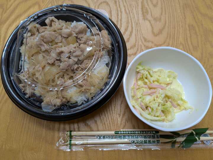 本日のメニューは、村の人の愛情たっぷりの豚丼と