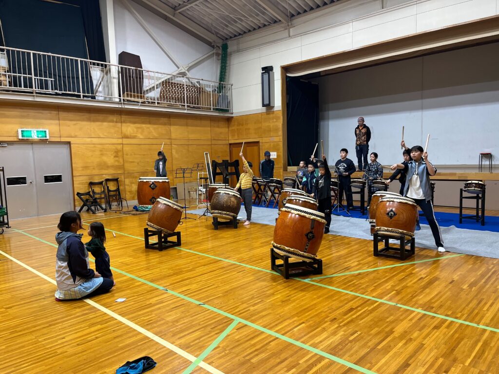 今年度の太鼓は、ふるさと祭に向けて村民の先生に来ていただいて練習しています!!