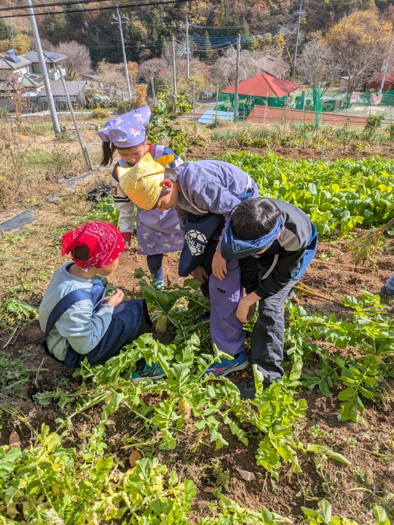 体験2日目公開済み: 2025年11月14日更新: 2025年11月15日作成者: 管理者カテゴリー: かじかなブログ 秋を探すフィールドビンゴの散歩にGO!帰ってから昼食作りです。 学園畑で 小松菜、大根を収穫。 この大根がなかなか手ごわく 一人の力では抜けませんでした・・・。昼食後はいよいよ 親子面接だ!かず関連記事 学園坂が・・・昨日の昼過ぎから降り出した雪が 溶けずにそのままの状態で残っていました 上野村は山が多いので、紅葉の時と雪景色とでは印象ががらっと変わります こんな寒い中でも半ズボンが居るなんて、、、 そして学園坂はつるっつるに という […]公開済み: 2021年1月13日更新: 2021年1月13日作成者: 管理者カテゴリー: かじかなブログ やるか・やらないか本日は 目白大学学生さんのボランティア活動のまとめ授業がオンラインであり、 私も参加させていただきました。 5班のそれぞれの活動をふりかえり、気づいた点などをていねいにまとめて 班ごとに発表してくれました。 私のほうでコ […]公開済み: 2024年1月11日更新: 2024年1月12日作成者: 管理者カテゴリー: かじかなブログ よろしくね!本日から『緑のふるさと協力隊』小山田光希さん(おや君)が指導員体験に入ります。 さっそく遊び相手として連れ出されていました。初日からあまり引っ張り回さないようにねー。 /池公開済み: 2022年9月26日更新: 2022年9月26日作成者: 管理者カテゴリー: かじかなブログ