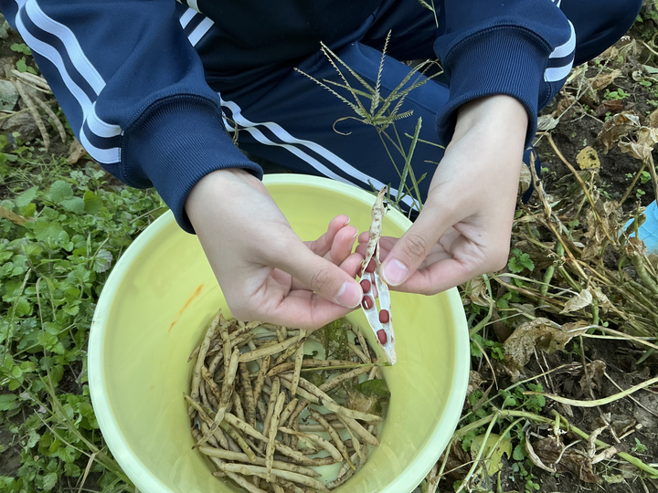 列状に生えている小豆の株から、熟した莢を選んで収穫するミッションは結構難しい。