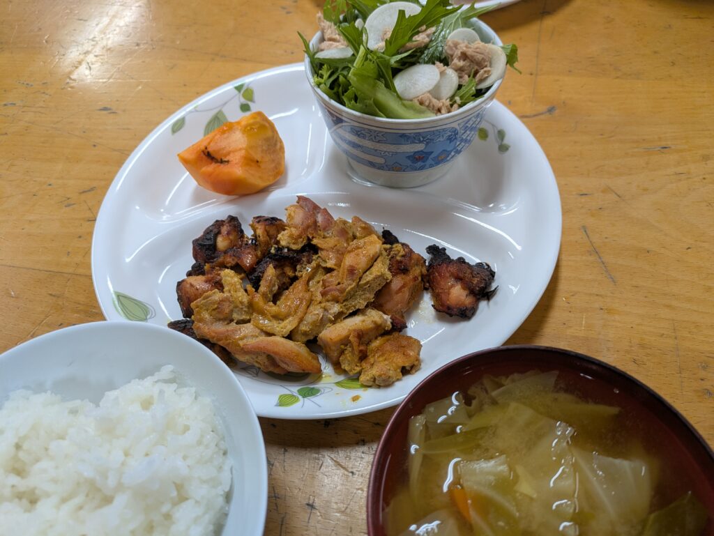 11月15日 夕食公開済み: 2025年11月15日更新: 2025年11月15日作成者: 管理者カテゴリー: かじかなごはん***ナツさんメニュー*** ・ごはん ・タンドリーチキン ・水菜と間引きカブたっぷりのツナサラダ ・お味噌汁 ・柿~いただきものですナツさんと有志による夕食メニューです コレ切ったのオレオレって もうアピールの〇〇美味しい夕ごはんを ありがとーかず 関連記事 8月26日 夕食・ひじき炊き込みごはん ・ズッキーニと豚肉の味噌炒め煮 ・出汁の素の手作りふりかけ ・サラダ ・お味噌汁公開済み: 2022年8月26日更新: 2022年8月27日作成者: 管理者カテゴリー: かじかなごはん 10 6月10日 朝食・ごはん ・玉子ベーコン ・サラダ ・スープ ・ヨーグルト公開済み: 2025年6月10日更新: 2025年7月13日作成者: 管理者カテゴリー: かじかなごはん 2月8日 朝食本日は川さんメニュー ・焼きサバ ・ブロッコリーのマヨネーズあえ ・わかめスープ ・納豆 でした! 小金井公開済み: 2024年2月8日更新: 2024年2月8日作成者: 管理者カテゴリー: かじかなごはん