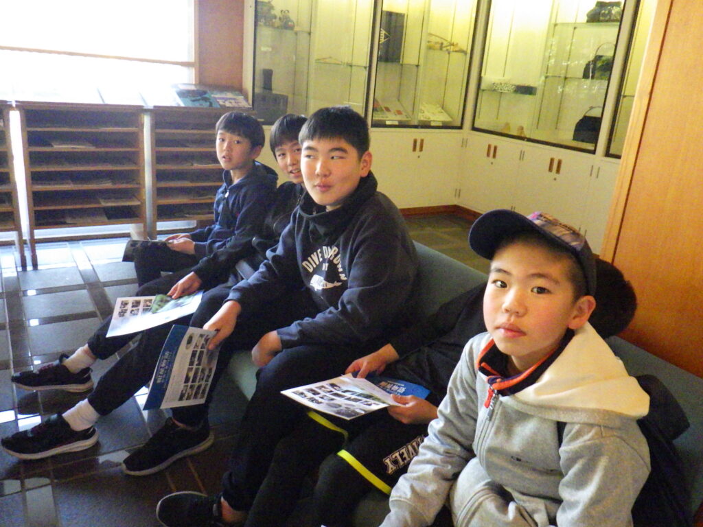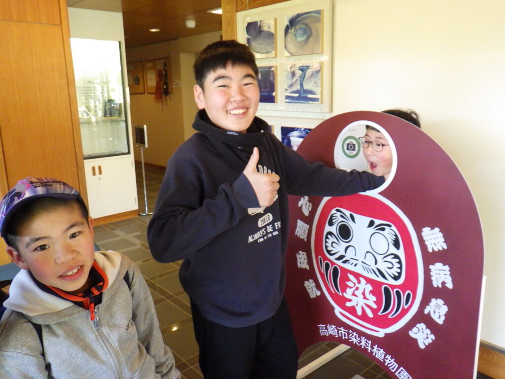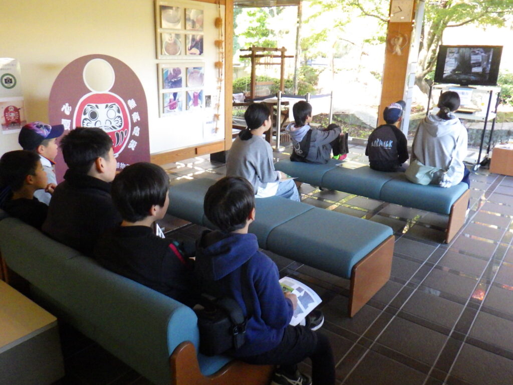 工芸館には染めた現物や動画コーナーもあり、皆で真面目に学習タイム。