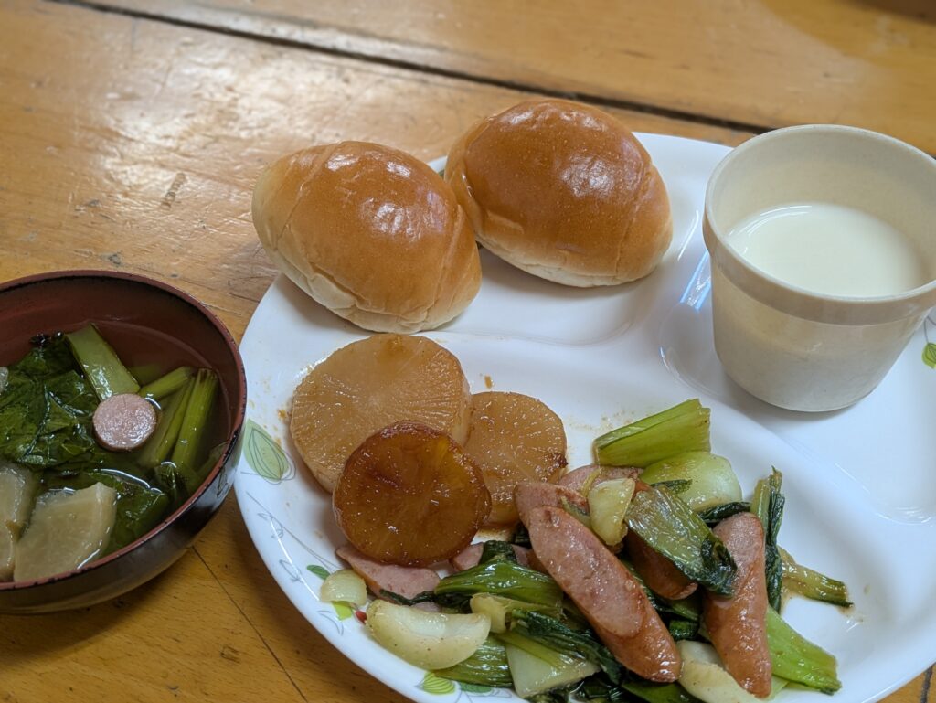 11月22日 朝食公開済み: 2025年11月22日更新: 2025年11月23日作成者: 管理者カテゴリー: かじかなごはん・ロールパン ・大根ステーキ ・畑のチンゲン菜とウィンナーの炒め物 ・飲むヨーグルト ・畑の小松菜と大根のスープこれまた サルが残した地中の大根を掘り起こして ニンゲンがいただきます!私もツネさん同様 これでもかっ!というくらい 野菜を調理します 肉と同じ重量(の野菜)は当たり前 それ以上はがっつり食べて欲しい! 旬の野菜ならなおさら てんこ盛りに調理します!かず関連記事 4月21日 夕食◆◇◆◇ ◆◇◆◇ まっちゃんメニュー ◆◇◆◇ ◆◇◆◇ ・おっきりこみ ・いわしの醤油しょうが煮 ・赤ジャガの油味噌炒め ・きんぴらごぼう おっきりこみは本当は煮込みうどんなのですが、 今回はさっぱりと仕 […]公開済み: 2021年4月21日更新: 2021年4月22日作成者: 管理者カテゴリー: かじかなごはん 6月17日 夕食★☆★Tさん、Nさんメニュー★☆★ ・鶏の唐揚げ ・揚げだしナス ・大根とツナスナップエンドウのサラダ ・具だくさんみそ汁 ・玄米まぜごはん ・梅ジュース 夏が近づいたと思わせてくれるメニューです!! 揚げ […]公開済み: 2022年6月18日更新: 2022年6月18日作成者: 管理者カテゴリー: かじかなごはん 9月17日 昼食公開済み: 2022年9月17日更新: 2022年9月17日作成者: 管理者カテゴリー: かじかなごはん