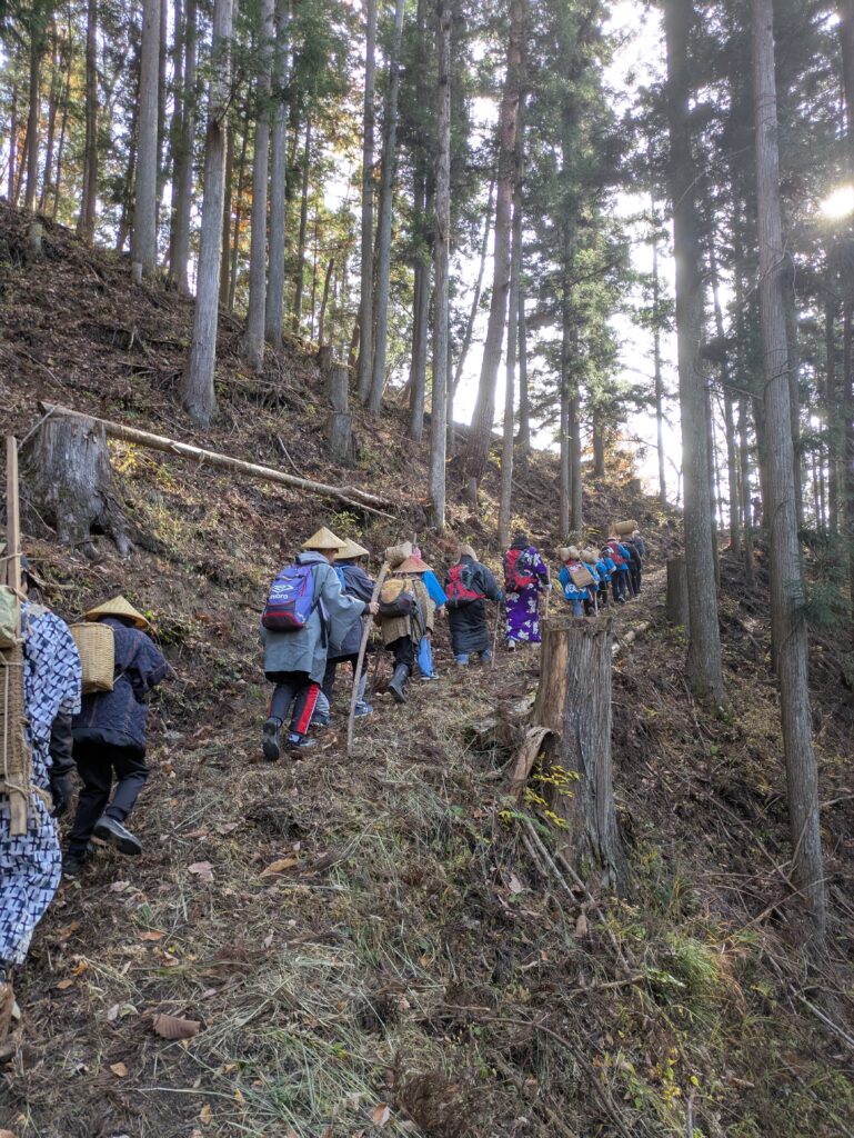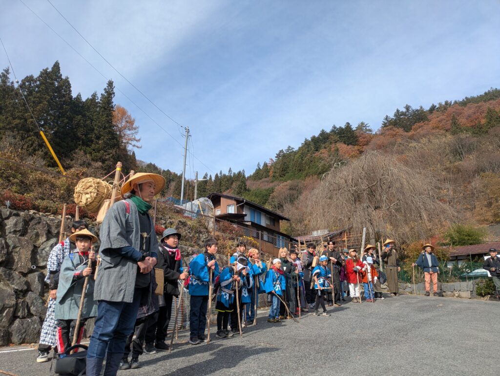 それぞれ5~10㎏のお米を背負子やリュックに詰め込んで