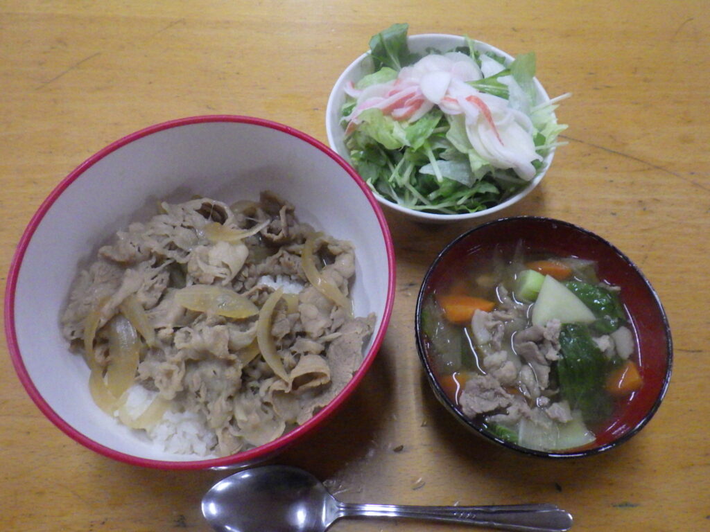 12月18日 夕食公開済み: 2025年12月18日更新: 2025年12月18日作成者: 管理者カテゴリー: かじかなごはん***ツネさんメニュー***■牛丼(※お好みでカレーを追加して『カレ牛』に)■カニカマサラダ■具だくさん汁■みかん(頂き物) 水菜、カブ、ネギ、チンゲン菜等々……。ツネさんによる学園野菜たっぷりメニューです。サラダなんて器から溢れんばかり。 /池関連記事 3月6日 夕食哲ちゃんの焼き肉ごはん ポテトサラダ 高菜漬けと大根の炒め煮 里芋と油揚げと長ネギのお味噌汁 ミカン(写真外) 食事当番のH人&I希が盛り付けを手伝ってくれました。 ありがとー。 汁物の里芋がホクホクとしていて美味しかっ […]公開済み: 2021年3月6日更新: 2021年3月7日作成者: 管理者カテゴリー: かじかなごはん 4月11日 朝食今日の朝食は ・ご飯、味噌汁、スクランブルエッグ、小松菜とツナの和え物、パイナップル です! 食事当番のK子とY一が頑張ってくれました☆彡 上野村の火曜日と木曜日は可燃ごみの日。可燃ごみは一番多く出るごみの種類ということ […]公開済み: 2023年4月11日更新: 2023年4月11日作成者: 管理者カテゴリー: かじかなごはん 1月10日 夕ごはん今年最初、永野さん特製晩御飯です。 鶏肉のそぼろたっぷりの三食丼です。 そしていつもしゃきしゃきでおいしいサラダ! 冬の美味しい白菜たっぷりのお味噌汁。 体を元気に保ちましょう。 スタミナ! つね公開済み: 2025年1月10日更新: 2025年1月10日作成者: 管理者カテゴリー: かじかなごはん