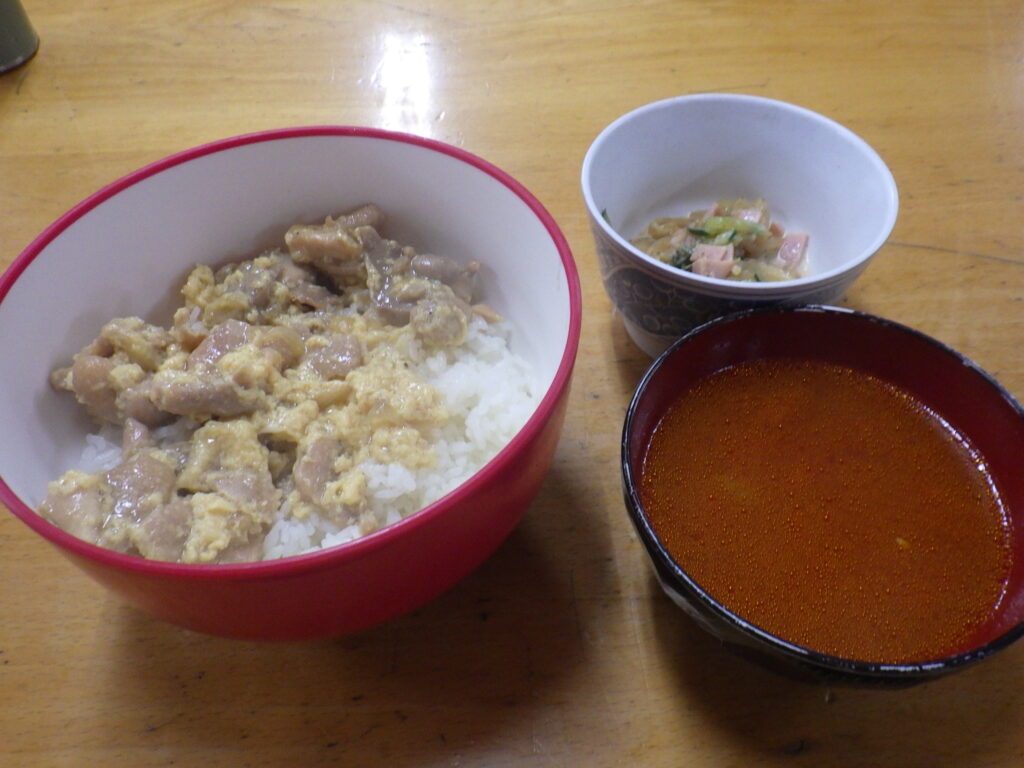 12月20日 夕食公開済み: 2025年12月20日更新: 2025年12月20日作成者: 管理者カテゴリー: かじかなごはん***Iさんメニュー***■親子丼■もやしサラダ■ミネストローネスープ 本日の夕食調理は、ゼミの実習で来園の目白大生Iさんにお任せ。「作る量には驚いたけど、料理は慣れている」との事。 お味は大好評、お代わり続出で大鍋分完売でした。 /池関連記事 10月18日 夕食***まっちゃんメニュー*** ■ごはん ■チキンソテーwith千切りキャベツ ■かぼちゃサラダ ■ゴーヤのかき揚げ ■みそ汁 そしてデザートには…… ■バースデー甘味(頂き物) 本日誕生日の […]公開済み: 2023年10月18日更新: 2023年10月18日作成者: 管理者カテゴリー: かじかなごはん 11月14日 朝食 体験生版・ごはん ・納豆 ・ジャーマンポテト風 ・焼きウィンナー ・ミックスべジサラダ ・お味噌汁 ・ミカン 今朝も 昨日同様 「やりたいモード」全開で 朝の活動スタート! ちょっと 交通整理をするだけで みんな和気あいあいと […]公開済み: 2020年11月14日更新: 2020年11月15日作成者: 管理者カテゴリー: かじかなごはん 10月29日 朝食・ポークフランク ・いんげんのごま和え ・サラダ(Kさん作り置き) ・親子丼の具のあまり ・みそ汁 ・おこげごはん ・りんごジュース(いただきもの)※写真外 今日は土曜日だけどいつも通りの6時に起きて、掃除して、朝ご飯食 […]公開済み: 2022年10月29日更新: 2022年10月29日作成者: 管理者カテゴリー: かじかなごはん