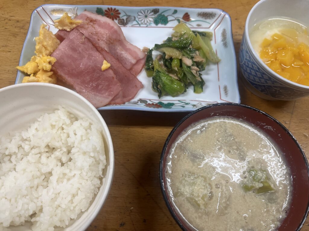 12月23日 朝食公開済み: 2025年12月23日更新: 2025年12月23日作成者: 管理者カテゴリー: かじかなごはん★ベーコンエッグ ★学園チンゲン菜のバター醬油炒め ★ご飯 ★豆乳スープ ★ご飯 ★フルーツヨーグルト(いただきモノフルーツ缶)今日は2学期終業式!! 最後まで元気にいってらっしゃーい!まな関連記事 9月21日 朝食■玉子豆腐丼 ■みそ汁 I希が10分くらいかき混ぜ続けたおかげで、 玉子がふわっふわに……なったかどうかは分かりませんが、 とりあえず美味しい玉子丼にはなりました。 /池公開済み: 2020年9月21日更新: 2020年9月21日作成者: 管理者カテゴリー: かじかなごはん 5月27日 夕食★はつよさんメニュー★ ・回鍋肉 ・ほうれん草のナムル ・切干大根 ・ご飯 ・みそ汁 今日もスペシャルゲストがきてくださり、みんなで楽しく夜ごはん🌙 今日も美味しいご飯をありがとうございました! まな公開済み: 2025年5月27日更新: 2025年5月27日作成者: 管理者カテゴリー: かじかなごはん 11月7日 朝食本日の朝食メニュー☆彡 ・ほっけ ・なすのうま焼き ・めかぶ ・さつまいもと玉ねぎの味噌汁(さつまいもは小学校で掘ってきたものです!) ・ご飯 ゆひ公開済み: 2024年11月7日更新: 2024年11月7日作成者: 管理者カテゴリー: かじかなごはん