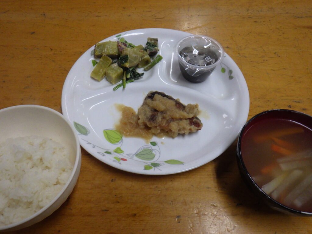 1月7日 朝食公開済み: 2026年1月7日更新: 2026年1月7日作成者: 管理者カテゴリー: かじかなごはん本日の朝食・ブリのみぞれ煮・サツマイモほうれん草和え(昨日のリメイク)・もずく・中華風スープでした!今朝は−6℃ぐらいまで冷え込みました。朝食中に現れた朝焼け。食事を進めているとあっという間に消えてしまいました。手際よく食当をするS稀、食べ終わったらすぐに片付け班の洗い物にとりかかるJ一、久々の学園ご飯に苦戦するS真(笑)。袖を封じられるR太。3学期、みんなのどんな姿が見れるかとっても楽しみです~! 小金井関連記事 2月9日 朝食本日の朝食メニュー ■煮込みうどん ■出汁巻き玉子 ■ゴマ油香る!きゅうりの浅漬け ■ひじきの煮物 出汁巻き玉子作りに挑戦です。上手に出来ました! おかわりの争奪戦が繰り広げられました。 いつも丁寧に盛り付 […]公開済み: 2025年2月9日更新: 2025年2月9日作成者: 管理者カテゴリー: かじかなごはん 11月16日朝食・スクランブルエッグ ・ウィンナー&ベーコン炒め ・納豆 ・フルーツヨーグルト ・炊き込みご飯 ・みそ汁 おかずは全て3年生I人君が頑張りました。塩コショウの加減が丁度良い!good job! ごちそうさまでした。 &n […]公開済み: 2020年11月16日更新: 2020年11月16日作成者: 管理者カテゴリー: かじかなごはん 11月18日 朝食【撮影:K太】 ・分づき米 ・焼きししゃも ・巣ごもり玉子(紫キャベツ・白菜・人参・ひき肉入り) ・白菜キュウリ塩昆布の浅漬け ・おみそ汁 ・プラムジャムヨーグルト K太のコメントは・・・ 卵割るのムズい! でした。 巣 […]公開済み: 2021年11月18日更新: 2021年11月18日作成者: 管理者カテゴリー: かじかなごはん
