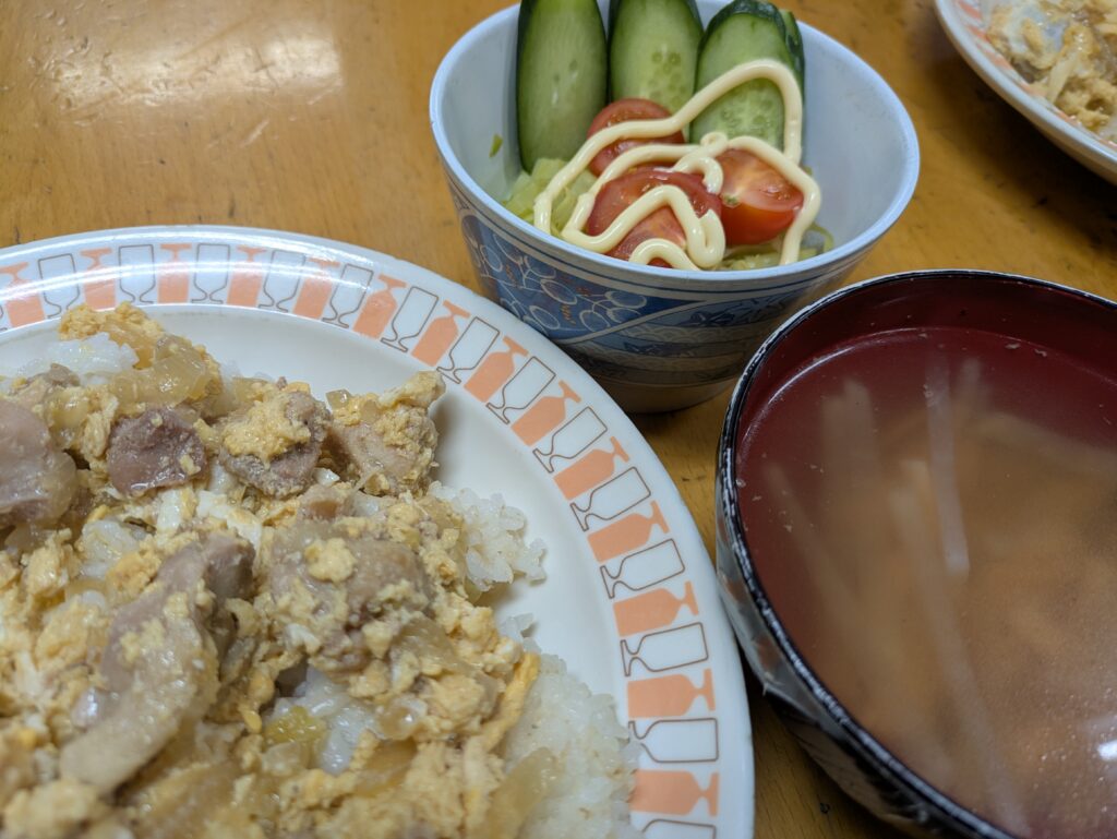2月5日 夕食公開済み: 2026年2月5日更新: 2026年2月16日作成者: 管理者カテゴリー: かじかなごはん ・親子丼 ・サラダ ・大根のスープ大量の大根を味を変え品を変えて提供していきます。 ありがたきかな、冬の頂き物♪かず 関連記事 6月28日 夕食***永野さんメニュー*** ■お好み焼き ■マカロニサラダ ■みそ汁 『お好み焼き』は、焼き方に各家庭の流儀が出ます。さて、上手く焼けるかな……? ……フワフワで良い感じに焼けました。大成功 […]公開済み: 2024年6月28日更新: 2024年6月28日作成者: 管理者カテゴリー: かじかなごはん 11月10日 朝食【撮影:Y嗣】 ・4色丼(鶏そぼろ・学園小松菜・人参・いり玉子) ・サラダ(学園サニーレタス・水菜・人参・キュウリ・ミニトマト) ・根菜みそ汁 ・バナナ&リンゴ こんな風に 超大型フライパンで ガサガサと そぼろを炒めて […]公開済み: 2021年11月10日更新: 2021年11月10日作成者: 管理者カテゴリー: かじかなごはん 10月19日朝食・鮭 ・麻婆豆腐 ・野菜 ・豆腐とワカメのみそ汁 ・ご飯 ・フルーツヨーグルト ・リンゴ 今日は昨日の麻婆豆腐と頂き物のりんごで、盛り沢山の朝ご飯 A君は包丁で果物の皮を剥く練習中 とても頑張っていました!2個目からは包 […]公開済み: 2020年10月19日更新: 2020年10月19日作成者: 管理者カテゴリー: かじかなごはん