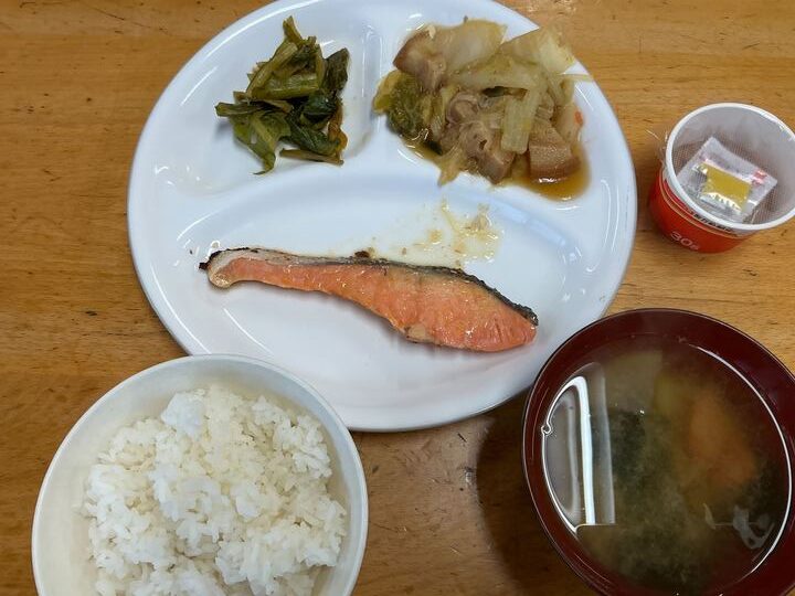 2月9日 朝食公開済み: 2026年2月9日更新: 2026年2月9日作成者: 管理者カテゴリー: かじかなごはん今日の朝食はつね担当。・焼き鮭・白菜と車麩の甘煮・小松菜のお漬物おかか和え・納豆・味噌汁上野村も今シーズン一番の冷え込みだったようです。インフルエンザ感染の園生数も増えず、週末を乗り越えた感じですが、引き続き園生たちが自分の体調を整えてゆけるよう、たくさん食べて過ごしてくれればと願っています。 ごちそうさまでした。つね関連記事 1月14日 夕食***はつよさんメニュー*** ■ごはん ■焼き餃子 ■もやしと卵の炒め物 ■味噌ポテト ■カボチャのポタージュ お代わり用に出した朝の赤飯が人気。 皆一心不乱に赤飯を『半殺し※』にしています。   […]公開済み: 2021年1月14日更新: 2021年1月14日作成者: 管理者カテゴリー: かじかなごはん 7月17日 昼食■冷やし中華 上野村も酷暑。 なんとタイムリーなメニュー!! そりゃおかわり2杯目行きますわ。 /池公開済み: 2023年7月17日更新: 2023年7月17日作成者: 管理者カテゴリー: かじかなごはん 7月11日 朝食■ごはん(雑穀入り) ■サバの味噌煮 ■みそ汁 今朝のみそ汁も食事当番R玖が担当。 やっぱり座布団のような油揚げ(本人曰く「当たり」)が混ざったり、 味見が具入りでたっぷりだったりと色々ドラマがありました。 […]公開済み: 2021年7月11日更新: 2021年7月11日作成者: 管理者カテゴリー: かじかなごはん