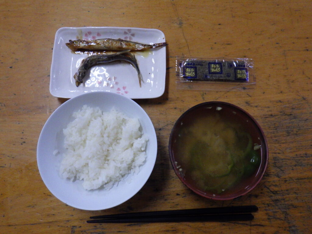 2月26日 朝食公開済み: 2026年2月26日更新: 2026年2月26日作成者: 管理者カテゴリー: かじかなごはん■ごはん■シシャモのバタぽん焼き■味付け海苔■みそ汁 続々増えるフライパン二刀流仲間。 仕上がりは上々。今日も美味しく出来上がりました。 /池関連記事 9月17日の山小屋朝食目覚めもさわやか 5時半起床🎵 今日も元気に いってみよう❗ いただきます❕ かず公開済み: 2023年9月17日更新: 2023年9月17日作成者: 管理者カテゴリー: かじかなごはん 1月16日 朝食■ごはん ■豚肉とホウレン草の炒め物 ■みそ汁 ■フルーツ入りヨーグルト (撮影:Iる) 最近の食事BGMは、ミュージカル『LI〇N KING』(一部伏せ字)のCDがヘビロテです。 学園生の一部が偶に発する […]公開済み: 2022年1月16日更新: 2022年1月16日作成者: 管理者カテゴリー: かじかなごはん 3月9日 夕食***はつよさんメニュー*** ■ごはん ■豚肉とじゃがいものチリトマトソース和え ■大根のツナ和え ■サツマイモのレモン煮 ■みそ汁 チリ和えには先日〆た学園産の鶏肉入り。 旨み(も歯応えも)たっぷりのお […]公開済み: 2021年3月9日更新: 2021年3月9日作成者: 管理者カテゴリー: かじかなごはん