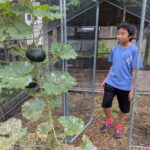 喜んで食べるので ニワトリにカボチャの葉を ちぎっては あげてます 実ったカボチャに耳をあてて・・・ カボチャミバエの実を食む音がしないか チェック! 中身を見たいような 見たくないような この2本のコンニャク 掘り出し […]